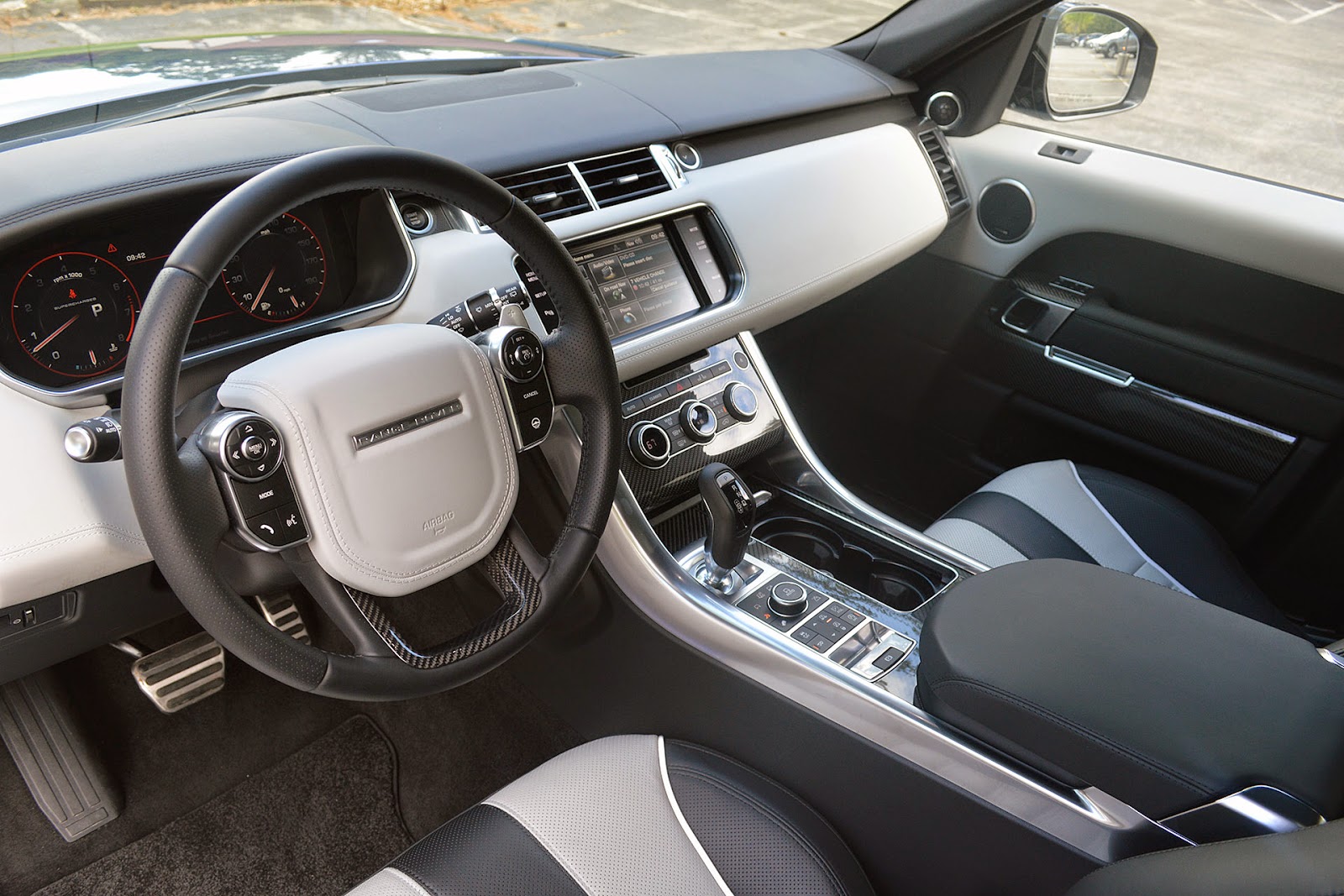 Роскошный салон флагмана предлагает современные опции комфорта, среди которых, скажем, сиденья Executive Class с массажной технологией Hot Stone и два 10-дюймовых сенсорных экрана системы Touch Pro Duo. Задние сиденья отличаются увеличенным углом наклона спинки (на 40°) и более мягкими подушками. Выдающиеся возможности на бездорожье гарантируют постоянный полный привод, дорожный просвет 297 мм, пневматическая подвеска и такие фирменные технологии, как, скажем, система Adaptive Dynamics, обеспечивающая непрерывную переменную амортизацию, и модернизированная технология Terrain Response с режимами Grass Gravel Snow, Mud/Ruts, Sand и Rock Crawl, а также система Low Traction Launch, помогающая использовать всю доступную тягу для преодоления скользкой поверхности.