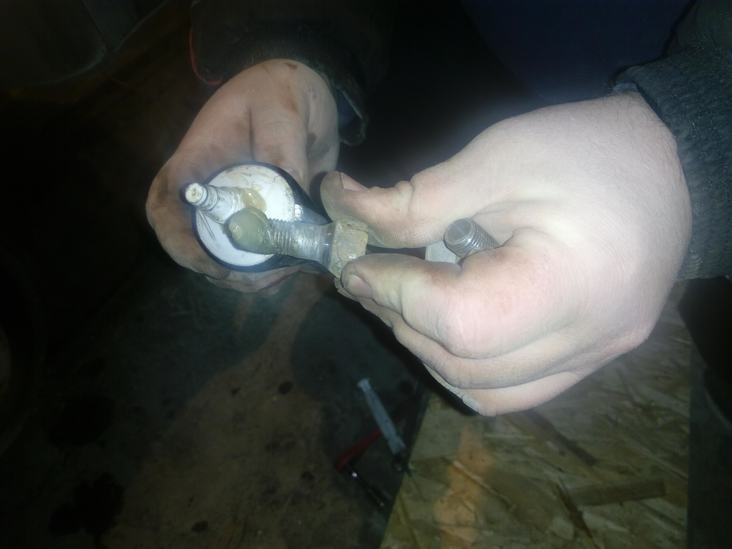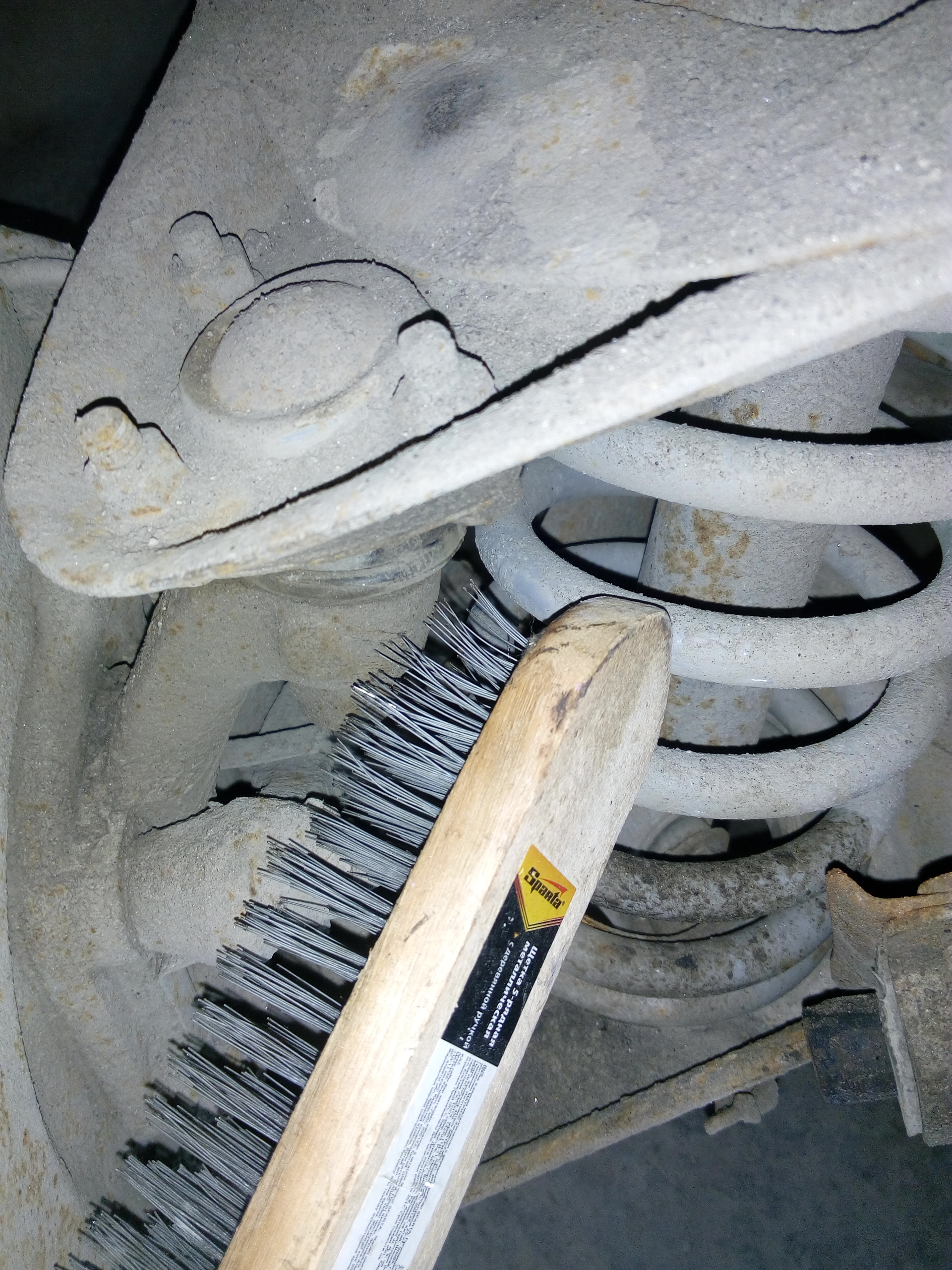 - Щеткой по металлу тщательно очищаем резьбу пальца шаровой опоры. До блеска. Не пренебрегайте этим пунктом так как это во много раз облегчит всю работу.
