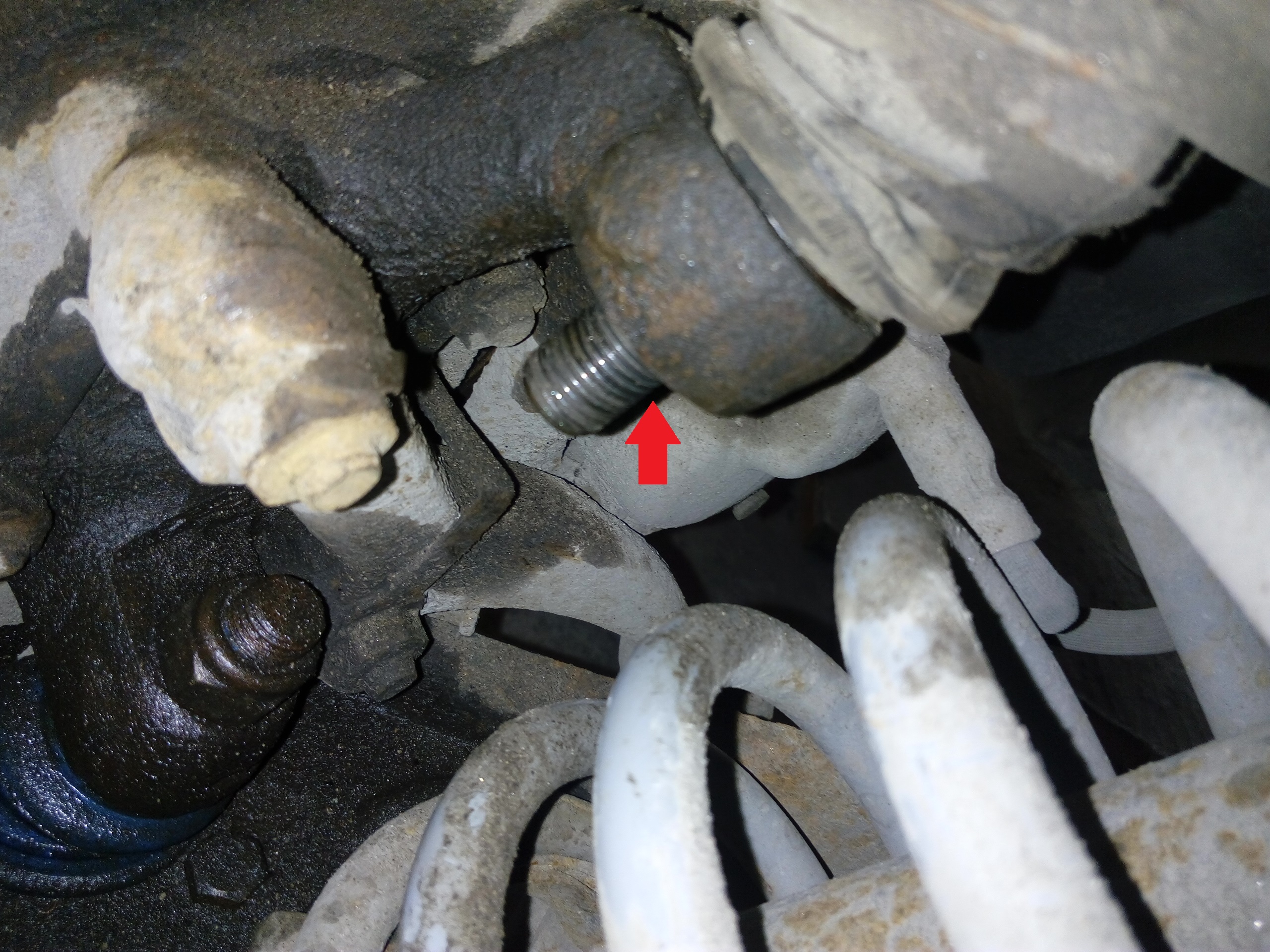 - После снятия колеса открывается доступ к подвеске автомобиля. На верхнем шаровом пальце есть крепёжная гайка. Она откручивается рожковым ключом.